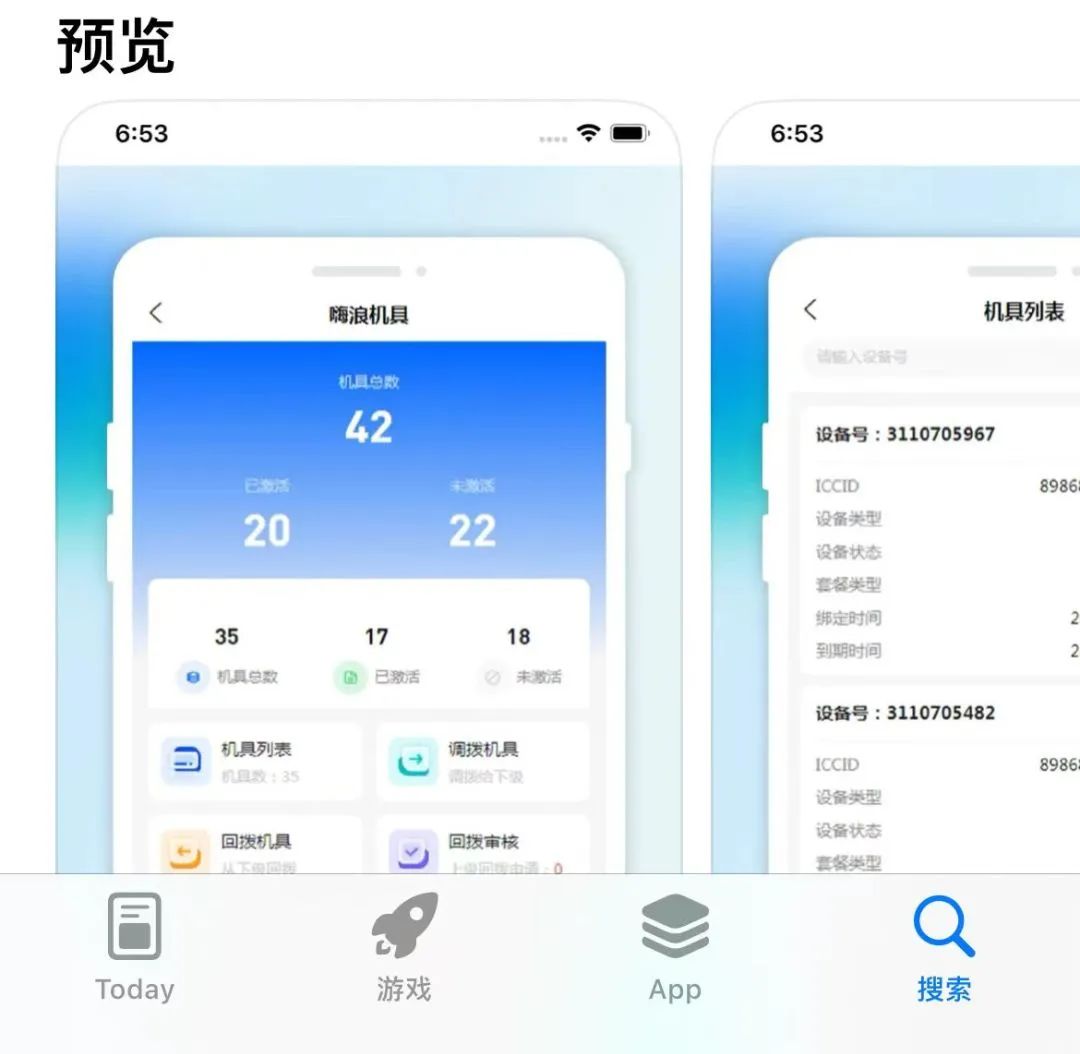 可以在“嗨浪机具”调拨回拨,管理团队成员的设备调动。