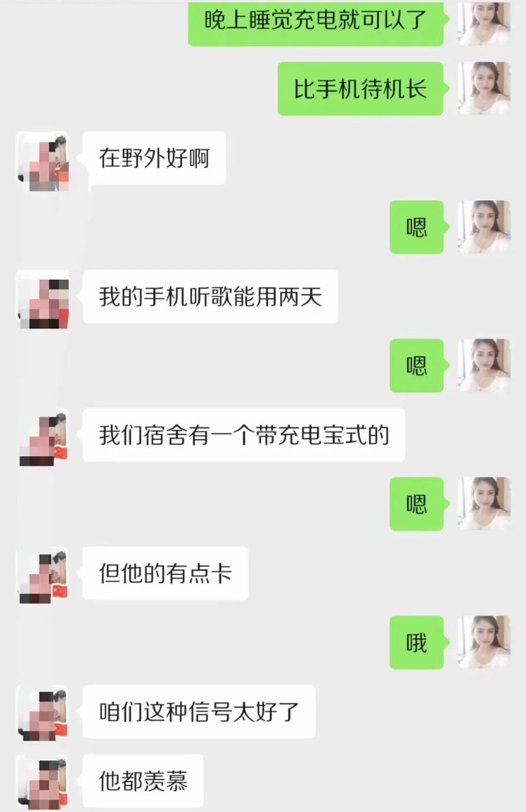 有一位小哥哥反馈,在野外用嗨浪,手机听歌能用两天。舍友买的其他品牌产品,有点卡,很羡慕嗨浪信号好。